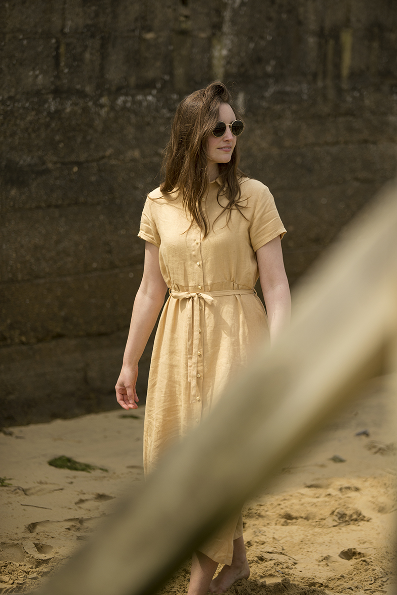 Robe Tulipe en lin français jaune curry, notre lin est labélisé Masters of Linen.